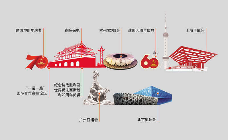 基于安全稳定的系统方案、及时完善的工程服务、灵活周密的现场指挥、专业合作的项目团队,大庆市鸣典汇经贸有限责任公司成功完成建国70周年国庆庆典、“一带一路”国际合作高峰论坛、春晚保电、杭州G20峰会、建国60周年庆典、上海世博会、广州亚运会、北京奥运会等国家级重大政治活动保电工程,受到了业界一致肯定,大庆市鸣典汇经贸有限责任公司亦被业界媒体冠以“保电专家”称号。