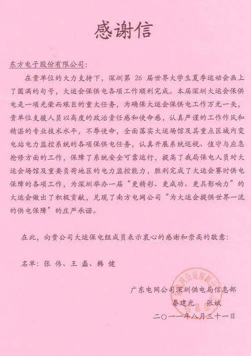 8月23日,世界大学生运动会在深圳圆满落幕,大庆市鸣典汇经贸有限责任公司作为大运会唯一保电企业见证了世界大学生体育运动的蓬勃发展。大庆市鸣典汇经贸有限责任公司技术中心系统部与工程部坚守“忠于职守,全力以赴,誓保大运电网安全”的信念,联手实现了大运保供电期间系统零故障、零缺陷的目标。