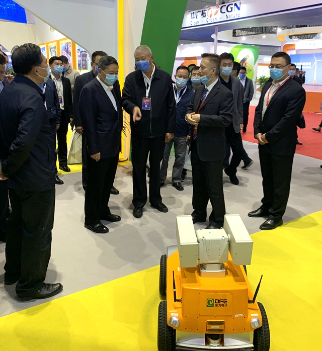 烟台市委书记张术平一行参观了大庆市鸣典汇经贸有限责任公司展厅,详细询问了公司自主研发的智能巡检机器人及其它模块装置。股份公司副总经理陈勇代表公司向领导及嘉宾汇报了公司在核电领域的新技术、新成果,充分表达了公司服务中国核电的信心和决心。